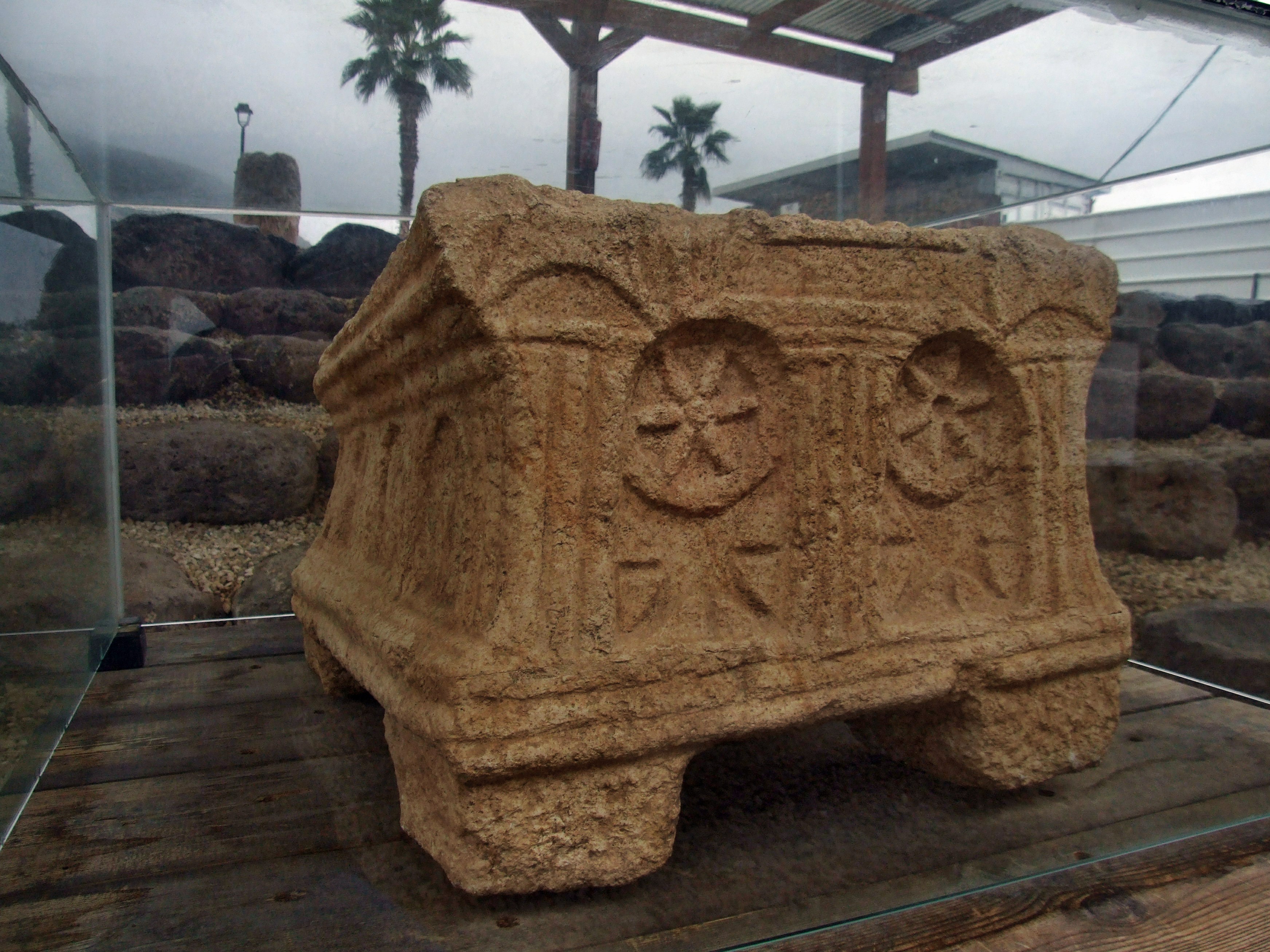 Kámen ve tvaru chrámu byl datovaný do období Ježíšova života. Kámen z Magdaly je pravděpodobně nejstarším uměleckým zobrazením druhého chrámu. Podélná strana kamene zobrazuje stranu budovy s klenbami, s trojrozměrným provedením, které vytváří iluzi, že se objevují uvnitř chrámu. Na zadní části kamene jsou na sloupku zobrazeny dvě kola nad geometrickými tvary, které znázorňují oheň. Předpokládá se, že přední a boční stěny představují Druhý jeruzalémský chrám a zadní strana s koly a ohněm pak představuje velesvatyně – Svatost svatých (Sancta sanctorum / Kodeš ha kodašim) – nejposvátnější vnitřní část Chrámu s Deskami zákona.